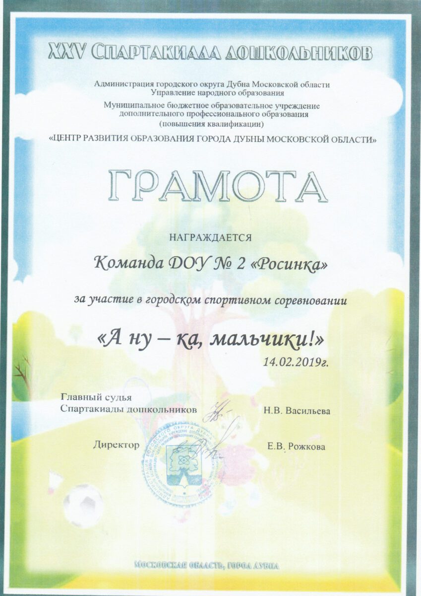 Достижения воспитанников2024Городской конкурс Ожившие эмоции 2 место Захарова Катя и Власов Никита. 2 место в номинации «Инсценировка. Дети 6-7 лет». Приказ директора ЦРО от 22.04.2024 № 116/7.1-05День Земли Федюнина Ева Александровна — 2 место2023Городской дистанционный выставка-конкурс детского рисунка «Я рисую этот мир». Власов Никита, 1 место. приказ ЦРО от 28.11.2023г №279/7.1-05 Городской дистанционный выставка-конкурс детского рисунка «Я рисую этот мир». Кочергина Настя, 1 место. приказ ЦРО от 28.11.2023г №279/7.1-05 Муниципальный конкурс «Засветись, стань яркой личностью». Зайцев Максим, 1 место. Приказ ЦРО 278/7.-05 от 2111.2023Муниципальный конкурс «Засветись, стань яркой личностью». Власов Никита, 2 место. приказ ЦРО 278/7.1-05 от 21.11.2023 Муниципальный конкурс «Засветись, стань яркой личностью». Филины Мирон и Роман, 2 место. приказ ЦРО 278/7.1-05 от 21.11.2023 Муниципальный этап конкурса УФНС России по Московской области. 1 место, коллективная работа «Финансовая грамотность дошкольников». Приказ ЦРО № 262/7.-05 от 08.11.2023 Муниципальный этап конкурса УФНС России по Московской области. Викторов Виктор, 1 место, «Сказка о налогах». Приказ ЦРО № 262/7.-05 от 08.11.2023 Муниципальный этап конкурса УФНС России по Московской области. Левкович Виталий, 1 место, «Финансовый круговорот». Приказ ЦРО № 262/7.-05 от 08.11.2023 Муниципальный конкурс «Краски Осени». Номинация «Сценическое творчество». Воропай София. 2 место. Приказ ГОРУНО № 435/1.1-05 от 03.11.2023Муниципальный конкурс «Краски Осени». Номинация «Сценическое творчество». Федюнина Ева. 3 место. Приказ ГОРУНО № 435/1.1-05 от 03.11.2023 Муниципальный конкурс «Краски Осени». Номинация «Медиатворчество». Горбачев Федор. 3 место. Приказ ГОРУНО № 435/1.1-05 от 03.11.2023 Городской конкурс чтецов «Детство — счастливая пора». Гадзыра Кира — 2 место — приказ ЦРО от 27.01.2023 №32/7.1.-05 Региональный этап Всероссийского конкурса экологических рисунков. Номинация «Экологическая среда города». Федюнина Ева. 3 место.Региональный этап Всероссийского конкурса экологических рисунков. Номинация «Профессия эколог» . Викторов Виктор. 3 место. Всероссийская Экологическая Олимпиада «Эколята — молодые защитники Природы». 2 победителя, 7 призеров.20221 место. Федюнина Ева. Всероссийский творческий конкурс «Сердце отдаю детям». номинация «Художественное чтение. Диплом №PI – 2022-3110-0090 от 31.10.2022 Гадзыра Кира. Победитель к муниципальном конкурсе-дефиле костюмов «Засветись, будь яркой личностью» в номинации «Самый оригинальный костюм».Муниципальный этап фестиваля детского рисунка «Детям Подмосковья — безопасную жизнедеятельность». 1 место — 4 человека, призеры — 2 человека. Приказ ЦРО 157/7.-05 от 20.09.20221 место. Кольцова Полина. Муниципальный этап Всероссийского конкурса детского рисунка «Эколята — друзья и защитники Природы». — приказ ЦРО от 18.03.2022 №66/7.1-05 2 место. Захарова Катя. Муниципальный этап Всероссийского конкурса детского рисунка «Эколята — друзья и защитники Природы». — приказ ЦРО от 18.03.2022 №66/7.1-052 место. Кольцова Полина. Городской дистанционный творческий конкурс «От улыбки станет всем светлей» в номинации «Мои эмоции». — приказ ЦРО от 28.03.2022 №73/7.1-05 3 место. Иванова Алла. Городской дистанционный творческий конкурс «От улыбки станет всем светлей» в номинации «Моя семья». — приказ ЦРО от 28.03.2022 №73/7.1-053 место. Федюнина Ева. Городской дистанционный творческий конкурс «От улыбки станет всем светлей» в 